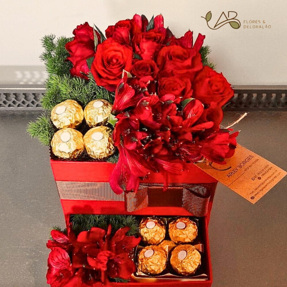 Box Torre Paixão com Rosas Vermelhas, uma apresentação imponente e romântica que exala amor e elegância, perfeita para momentos especiais.