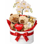 Box Ursinho Capivara com Orquidea Branca e Ferrero Rocher