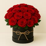 Apresentando um buquê deslumbrante composto por 20 rosas vermelhas vibrantes, cuidadosamente arranjadas em uma elegante caixa box. O arranjo é delicadamente atado com um laço, adicionando um toque final de charme. Esta é a escolha perfeita para expressar seu amor, apreciação ou parabenizar alguém em qualquer ocasião.