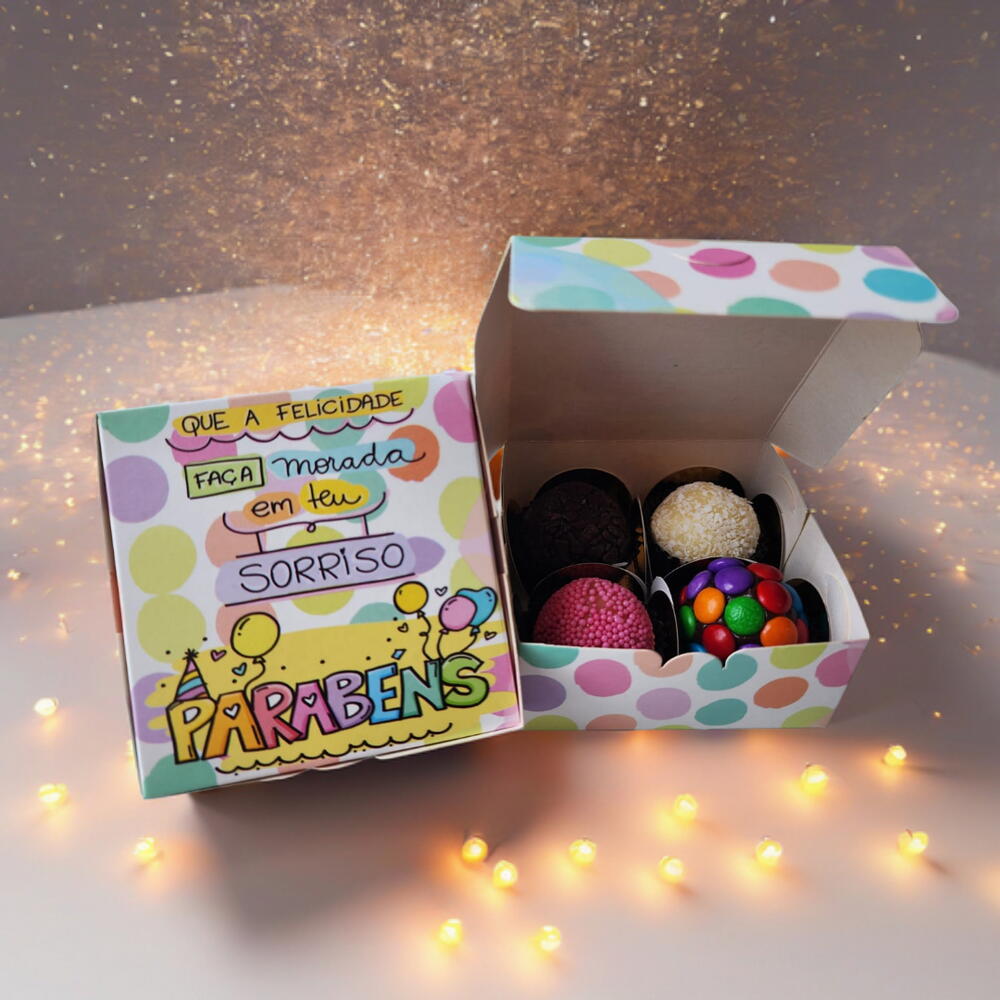 Brigadeiro na Caixa "Parabens" com Caneca de Aniversario
