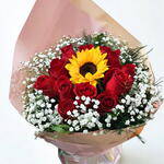 Este item elegante é um buquê encantador, composto por 12 rosas delicadas e um girassol expressivo, complementado por um toque de folhagens. Embalado com cuidado em uma embalagem atraente e finalizado com um laço gracioso, este buquê é o presente perfeito para expressar seus sentimentos mais ternos ou celebrar ocasiões especiais.