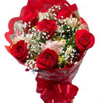Buquê com meia duzia de rosas vermelhas