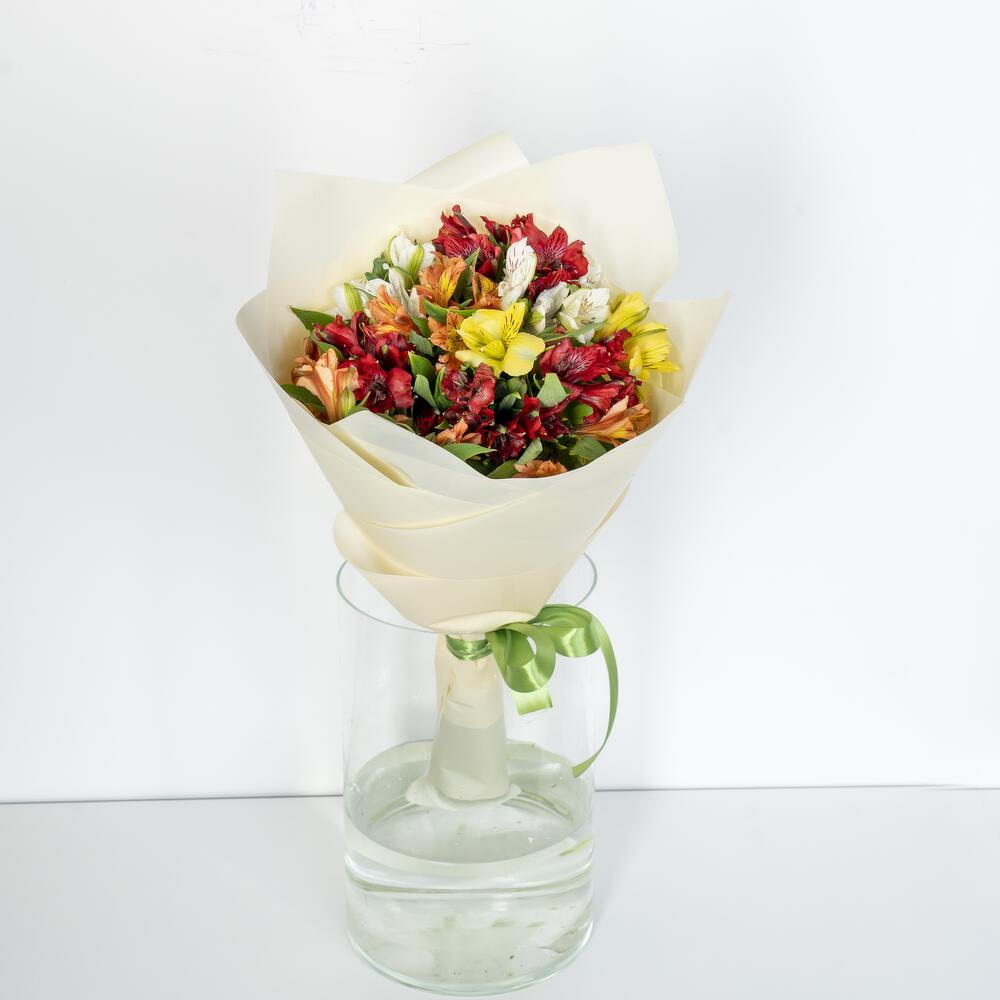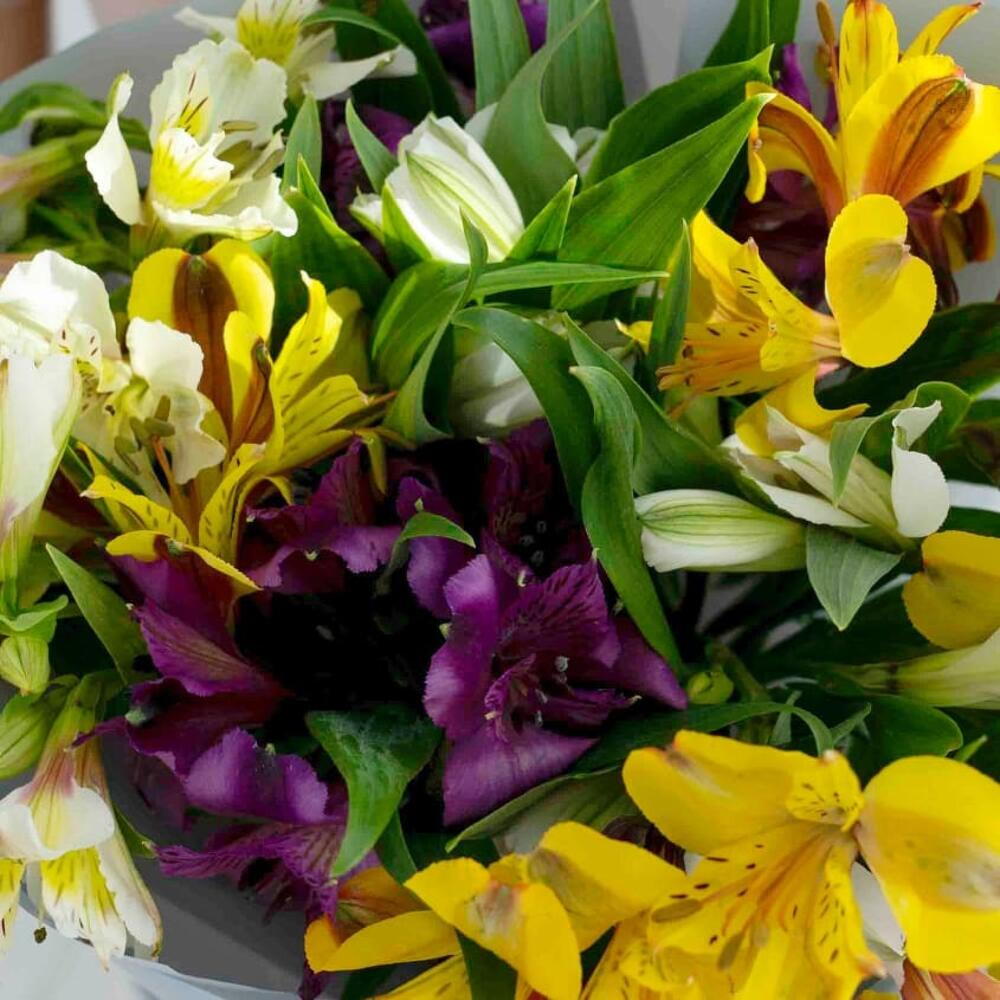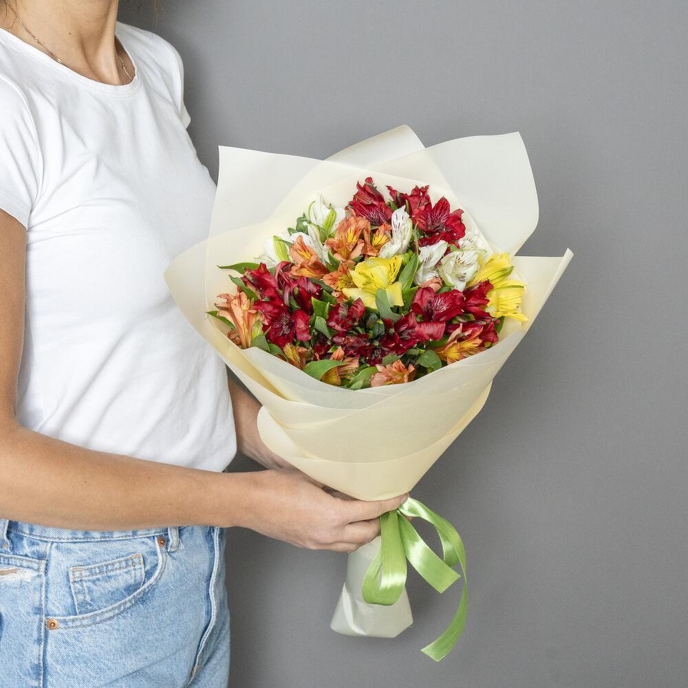 Se você quer surpreender com um buquê de flores original - escolha alstroemeria multicolorida! Um buquê brilhante e suculento vai colorir a vida cotidiana com cores. As flores não cheiram, então um buquê de alstroemeria é um sinal único de atenção para pessoas com um olfato sensível.