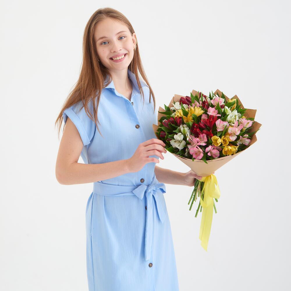 astroméria - 14 un. embalagem decorada - 1 un. laço em cetim - 1 un.