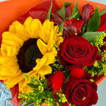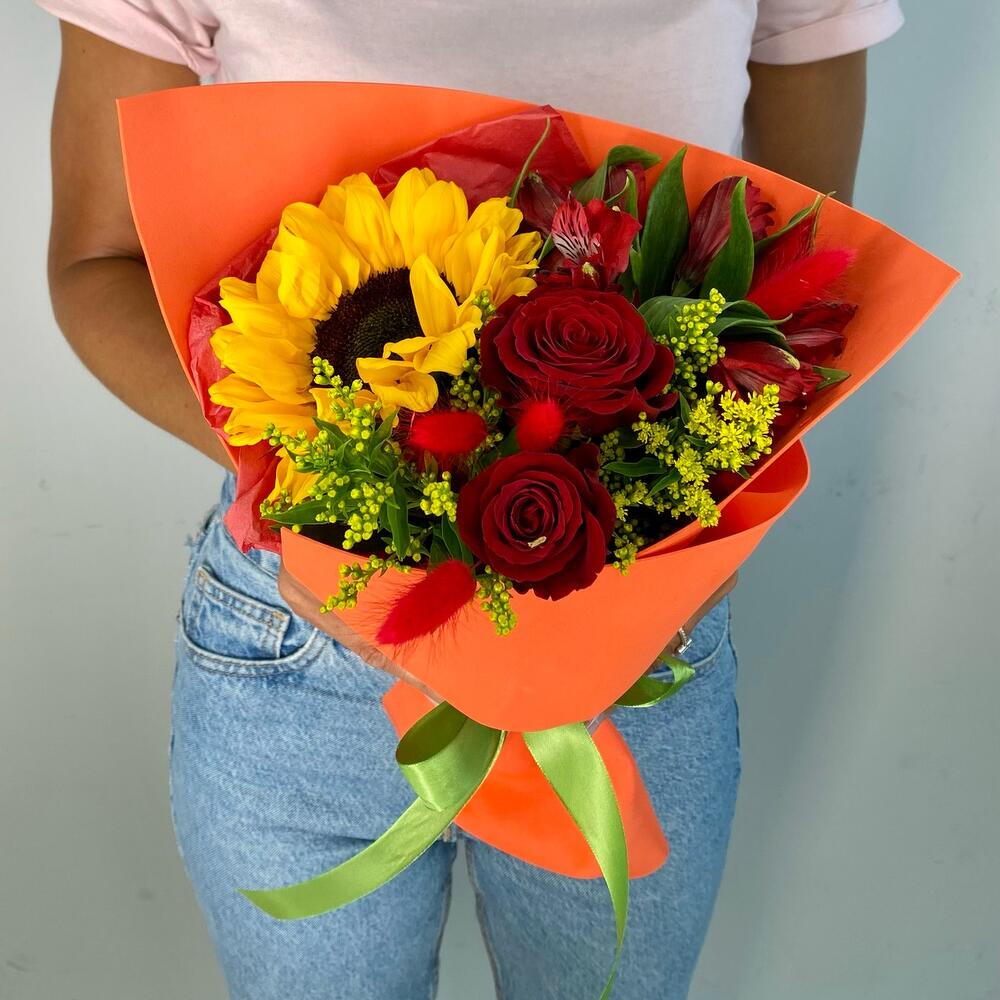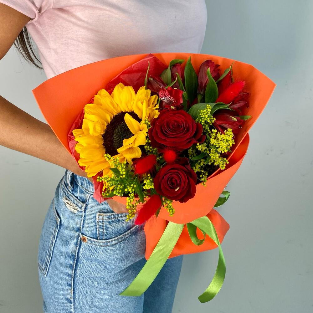 Buquê de girassois, rosas e alstroemeria "Sunbeam"