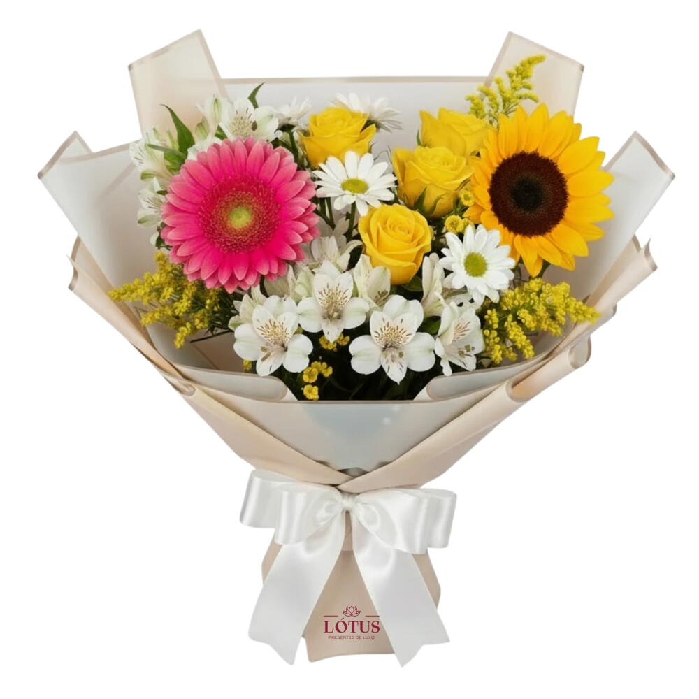 Um buquê encantador, composto por 7 tipos de flores, como gérberas vibrantes, rosas-amarelas, margaridas brancas e astromélias em tons de branco, amarelo e lilás. Este buquê traz um mix perfeito de cores e frescor, ideal para surpreender alguém querido em aniversários, casamentos ou qualquer ocasião especial. O que inclui? Gérberas rosa/pink Rosas-amarelas Margaridas brancas Astromélias brancas Flores roxas/lilás Flores amarelas pequenas Algumas flores brancas delicadas Embalagem especial Com seu design delicado, o Poesia em Flores transmite emoções de leveza e alegria, sendo a escolha perfeita para quem busca um presente único e elegante, finalizada com papel celofane e laço Buquê de flores frescas, perfeito para qualquer celebração ou gesto de carinho. Peça já o seu.