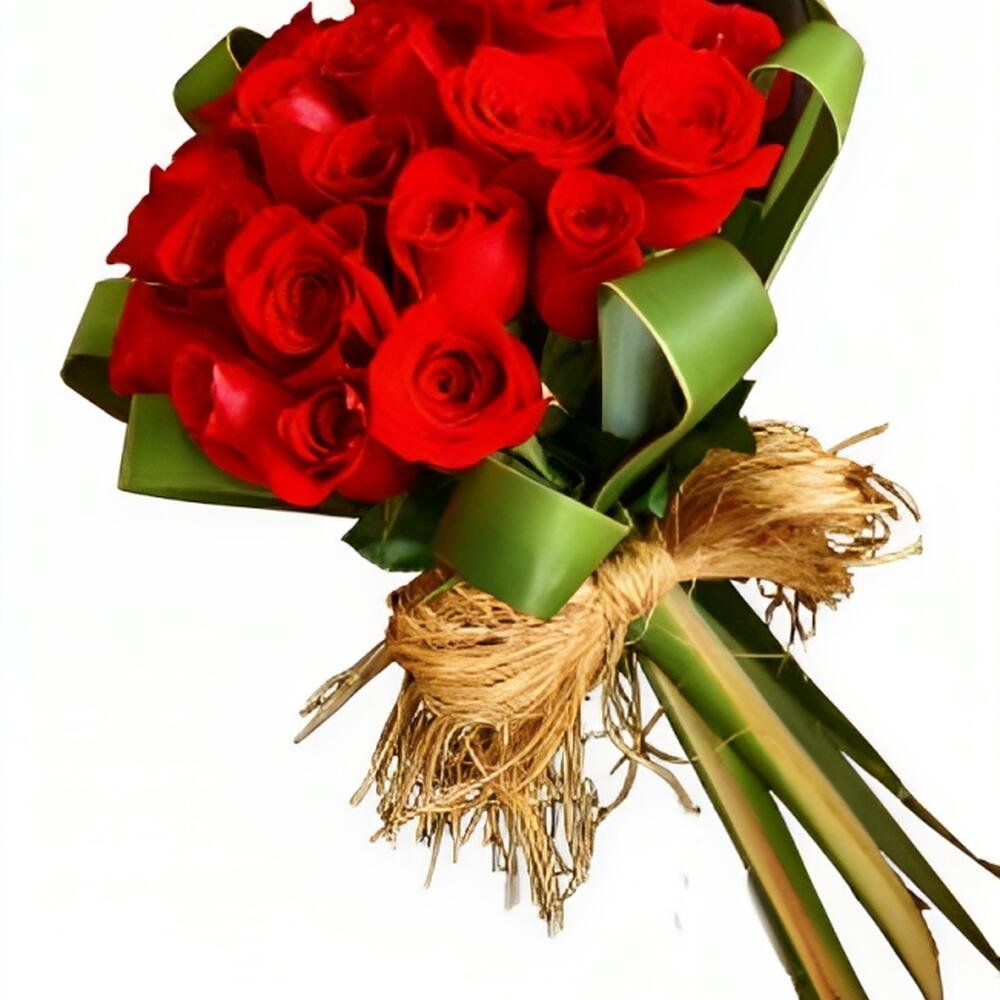rosa vermelhas - 24 un. embalagem celofane - 1 un. laço rústico - 1 un.