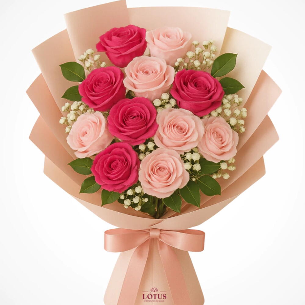Um buquê delicado e encantador, que une o charme das rosas em tons suaves e vibrantes em uma embalagem sofisticada. Perfeito para emocionar e transformar qualquer momento em uma lembrança especial.
