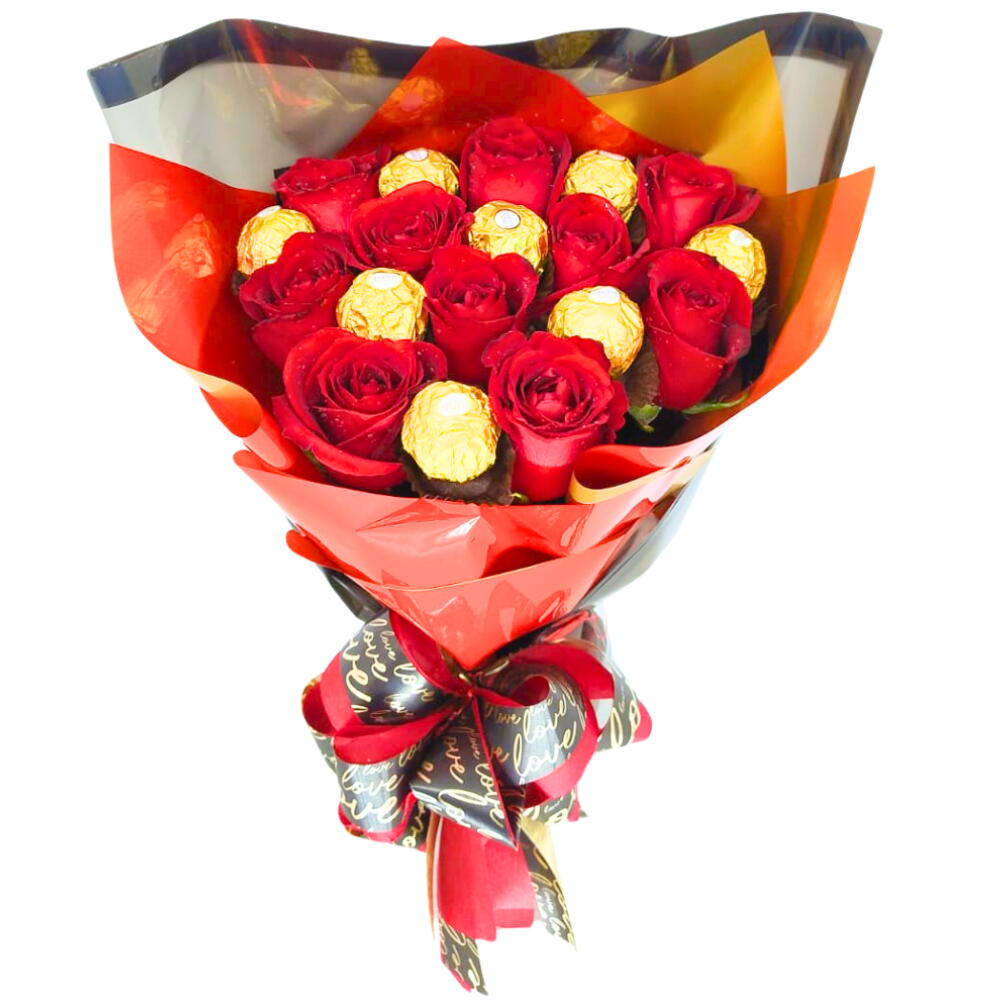 Buquê 10 Rosas - Luxo Vermelho e Ferrero Rocher