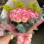 Um buquê com 12 rosas cor-de-rosa — símbolo de carinho, ternura e admiração. Um gesto suave que transmite amor sincero e gratidão em cada pétala.