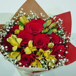Encante-se com este deslumbrante buquê composto por 15 rosas vermelhas, cuidadosamente selecionadas para apresentar a perfeição da natureza. As rosas são delicadamente acomodadas em uma embalagem elegante e finalizadas com um laço sofisticado. Acompanha acessório complementar que agrega um toque extra de requinte ao conjunto. Expresse o seu amor e apreciação através deste buquê apaixonante. Ideal para presentear em ocasiões especiais, expressando sentimentos de amor verdadeiro, paixão e respeito.