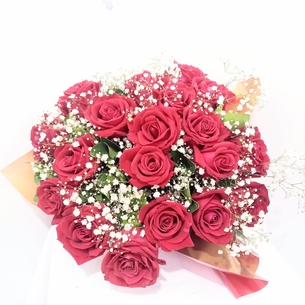 Este elegante buquê é composto por 18 rosas vermelhas nacionais, finamente organizadas com folhagens verdes e delicadas folhagens brancas, conhecidas como mosquitinhos. Tudo isso é cuidadosamente embalado em um sofisticado celofane especial, resultando em uma composição verdadeiramente encantadora e sofisticada. Ideal para expressar um sentimento, celebrar um momento especial ou simplesmente para trazer um toque de beleza e elegância ao seu dia-a-dia.