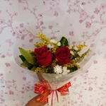 Este elegante buquê é composto por duas deslumbrantes rosas vermelhas, cuidadosamente selecionadas para simbolizar o amor e admiração. Ele também inclui uma variedade única de folhagens e completos, acrescentando ainda mais beleza e sofisticação. O buquê é apresentado em uma embalagem delicada e aprimorado com um toque final de um laço charmoso. Ideal para expressar sentimentos românticos, aniversários, datas comemorativas ou apenas para fazer o dia de alguém mais especial.