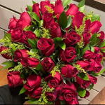 Este buquê luxuoso é feito de 20 rosas vermelhas exuberantes e 20 folhagens verdes frescas. As cores vibrantes das flores e folhas criarão uma atmosfera especial para qualquer evento. Por favor, observe que a cor das rosas pode variar caso não haja disponibilidade das vermelhas. Adicione elegância e sofisticação ao seu evento com este deslumbrante buquê.