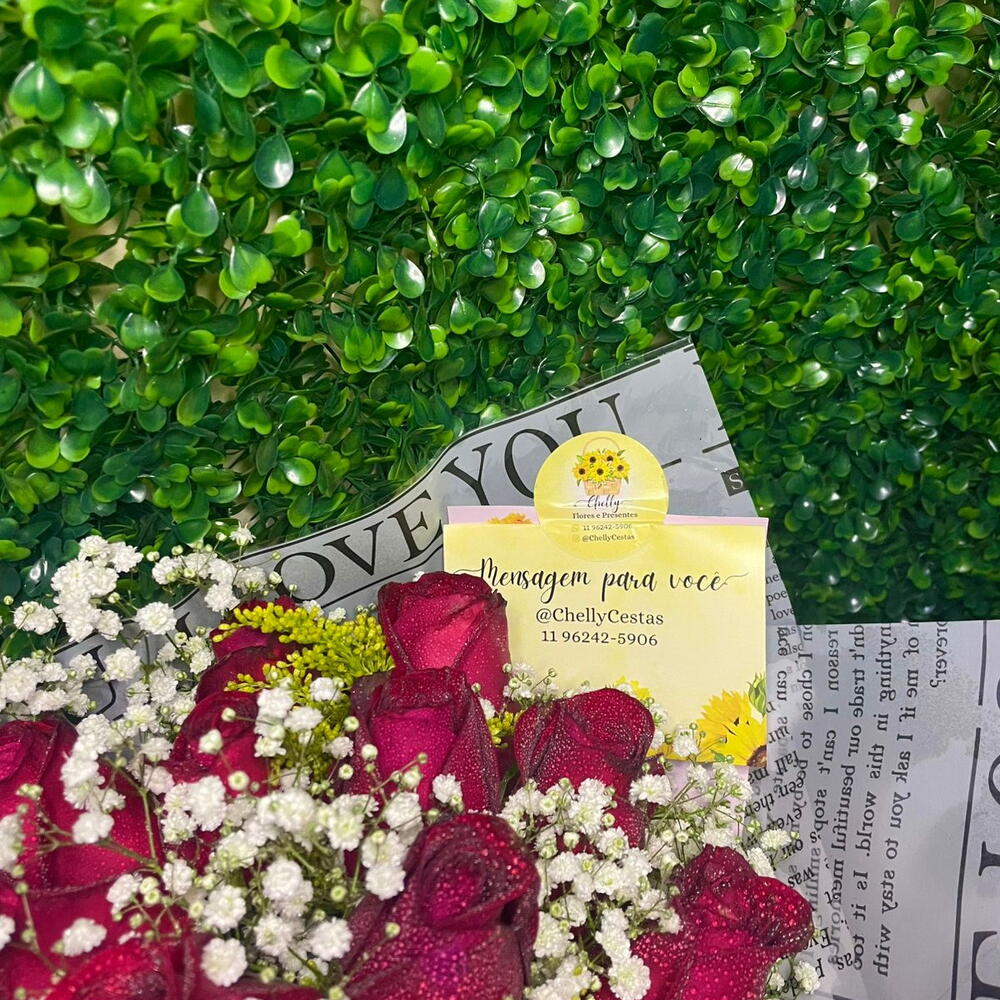 Um gesto que fala por mil palavras... 💌 Buquê com 20 rosas vermelhas, símbolo do amor mais intenso e verdadeiro, cuidadosamente arranjadas para encantar. Acompanha cartão com mensagem personalizada e uma charmosa tag com dicas de cuidados para manter cada flor linda por mais tempo. Perfeito para declarar sentimentos com elegância e paixão.