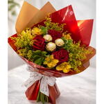 Surpreenda e derreta corações com o encantador buquê de rosas e deliciosos chocolates Ferrero Rocher. Deixe o dia de qualquer um mais doce e inesquecível. Peça já e comprove!