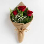 Buquê em Juta c/ 3 Rosas Vermelhas