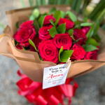 rosa - 30 un. folhagens - 1 un. laço em cetim - 1 un. embalagem moderna - 1 un. tag - 1 un.