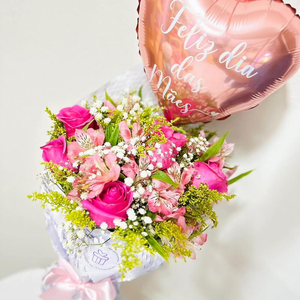 Surpreenda alguém especial com esse lindo buquê composto por 4 rosas de cores vibrantes e um balão personalizado. Este belíssimo arranjo combina a delicadeza das rosas com a alegria do balão, formando um presente cheio de carinho e afeto. Perfeito para todas as ocasiões.