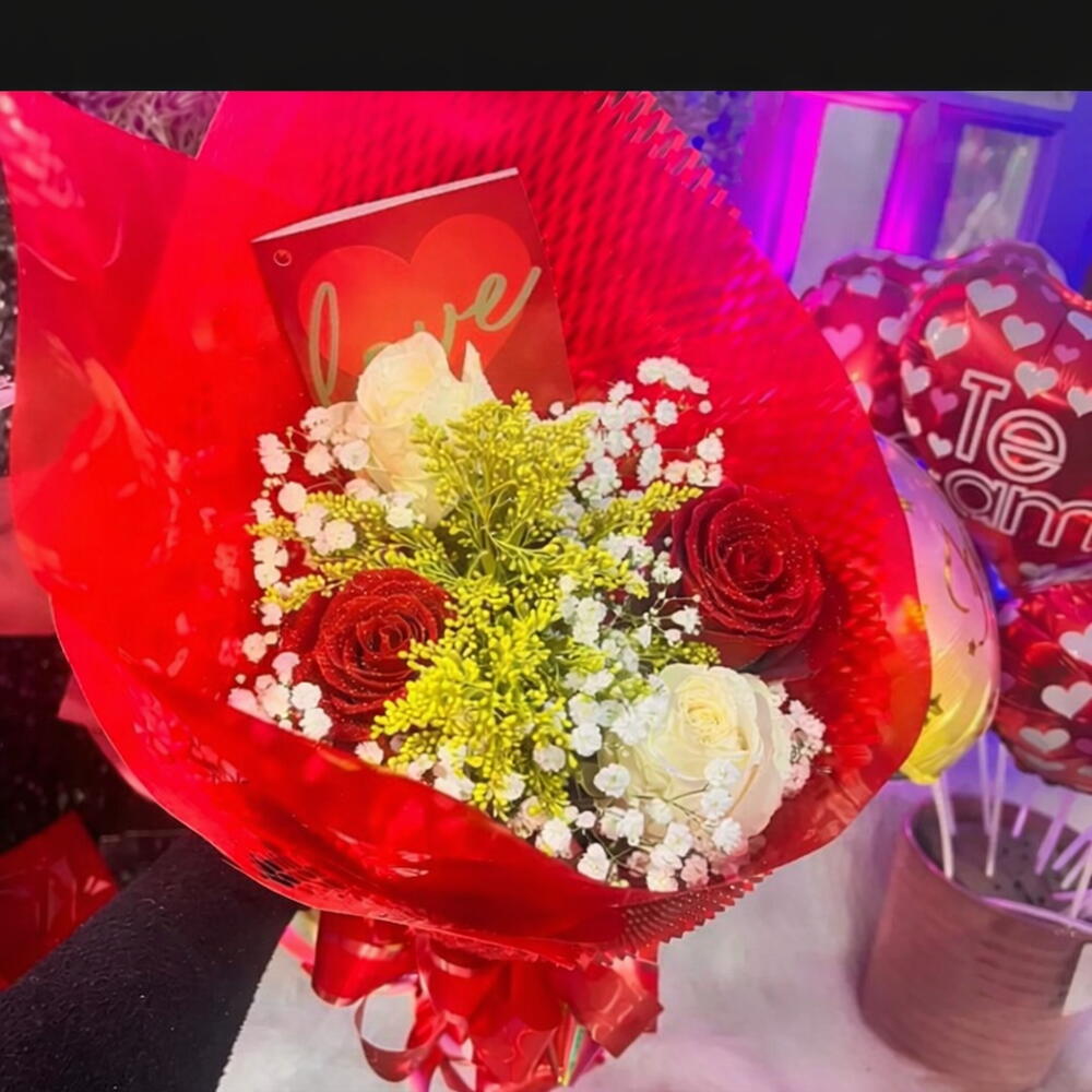 Encante-se com o nosso deslumbrante buquê! Composto por 4 rosas vibrantes, harmoniosamente emparelhadas com uma folhagem luxuosa, a apresentação elegante é realçada por uma embalagem sofisticada e um laço delicado. Este buquê é a escolha ideal para comemorar qualquer ocasião ou expressar sentimentos sinceros.