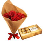 Buquê 4 Rosas Vermelhas + Ferrero Rocher 8 Unidades