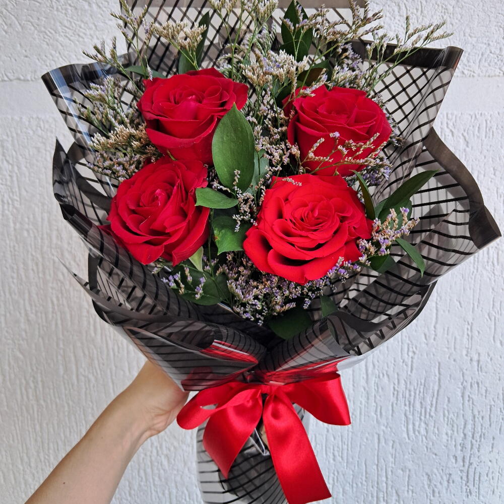Buquê 4 Rosas Vermelhas Importadas Linha Premium