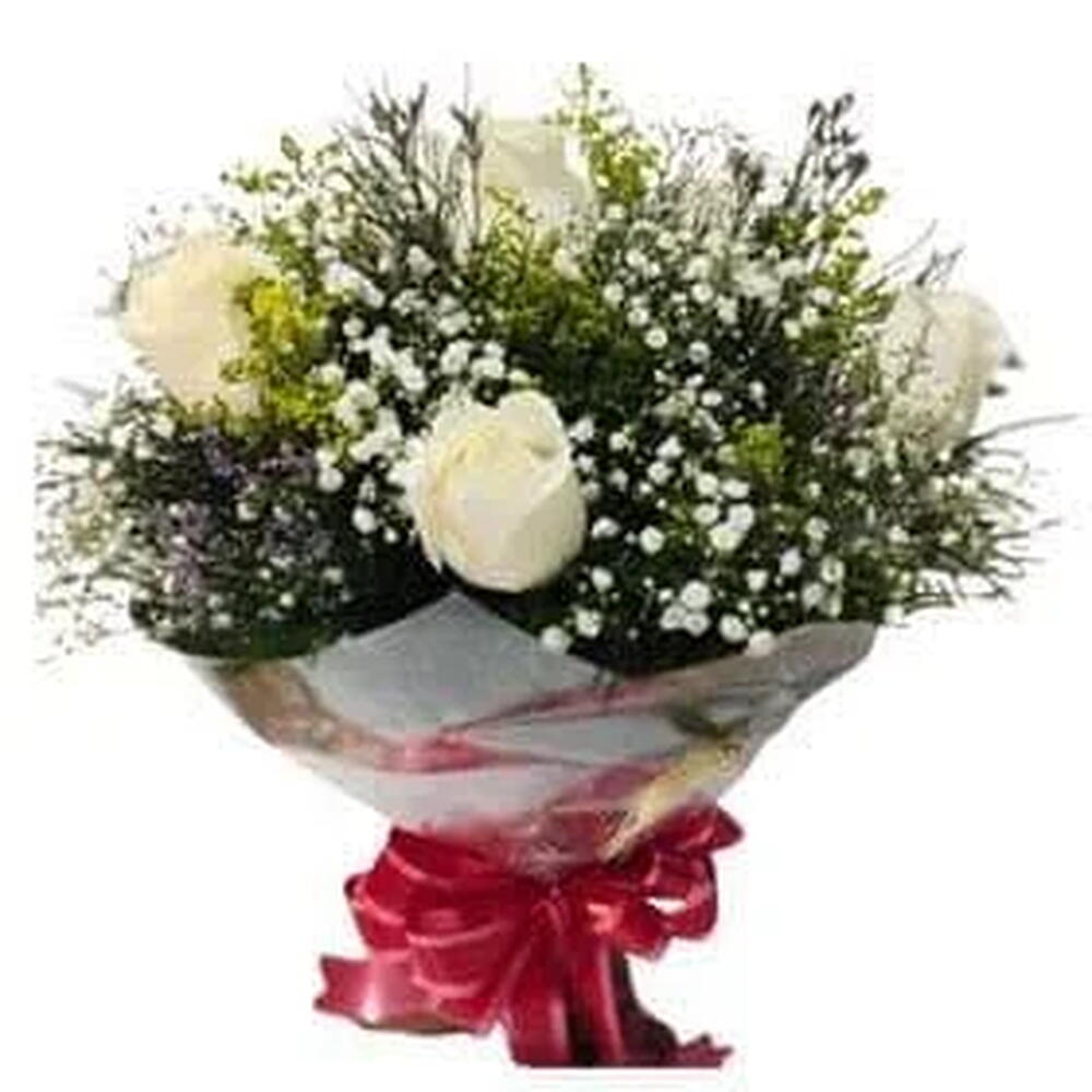 Surpreenda com Carinho, com este lindo buquê de rosas brancas e complementos.