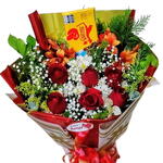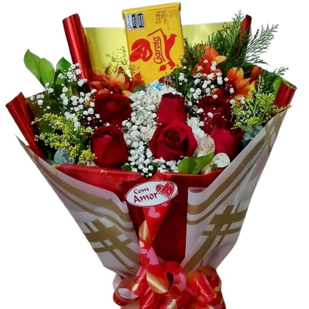 Um presente apaixonante que une a delicadeza de 6 rosas vermelhas, flores complementares e uma deliciosa barra de chocolate. Perfeito para surpreender quem você ama em momentos especiais com muito carinho e romantismo. Um buquê elegante, encantador e irresistível, feito para emocionar à primeira vista.