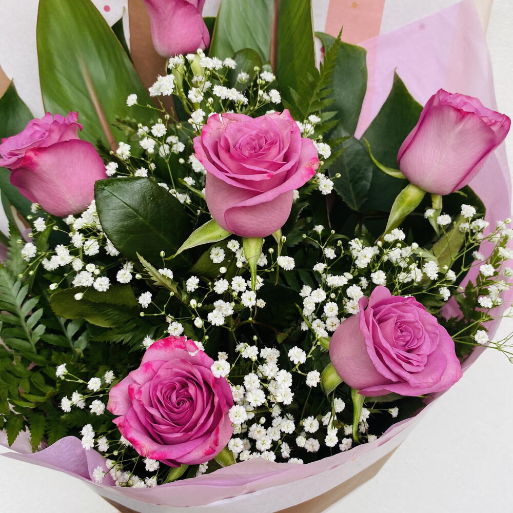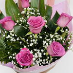 Um buquê encantador e romântico, composto por 6 rosas cor-de-rosa em plena abertura, que transmitem delicadeza e suavidade. As flores são acompanhadas por mosquitinhos brancos, que acrescentam leveza e um toque campestre, além de verdes da época, trazendo frescor e naturalidade à composição. O arranjo é cuidadosamente envolto em embalagem especial para presente, que valoriza ainda mais a beleza das flores, e finalizado com uma fita de cetim rosa, proporcionando um acabamento elegante e sofisticado.