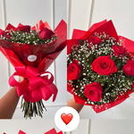Este belo buquê é composto por 6 impressionantes rosas vermelhas, cuidadosamente escolhidas para uma expressão de amor e paixão. O buquê também apresenta uma elegante folhagem que complementa com perfeição as rosas. Para garantir um visual deslumbrante, o buquê é habilmente embalado e amarrado com um refinado laço. Presenteie alguém especial ou use para acrescentar um toque de sofisticação à sua decoração de casa.