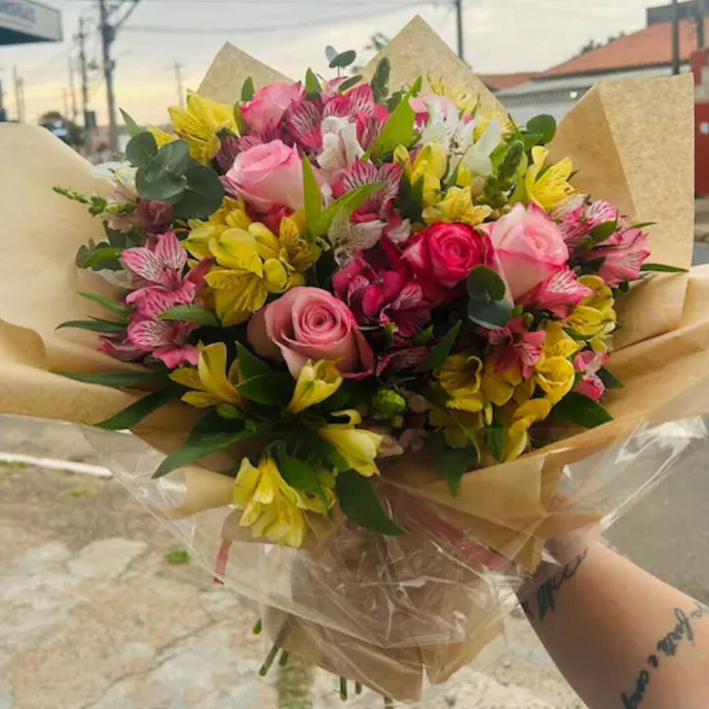 Buquê de 6 Rosas com Alstroemérias Delicado e cheio de encanto, este buquê combina 6 rosas — símbolo do amor e da admiração — com a suavidade e a alegria das alstroemérias, flores que representam amizade, lealdade e carinho. Perfeito para expressar afeto, gratidão ou romantismo, esse arranjo traz harmonia entre cores e fragrâncias, tornando qualquer momento ainda mais especial.