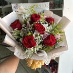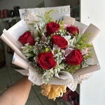 Buquê 6 Rosas e folhagem diversas