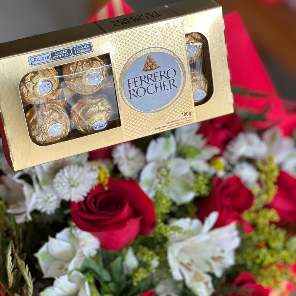 Encante alguém especial com o nosso irresistível Buquê de 7 Rosas Vermelhas acompanhado de deliciosos chocolates Ferrero Rocher. Este buquê deslumbrante combina a beleza clássica das rosas vermelhas com o sabor luxuoso dos famosos chocolates, criando uma experiência sensorial única e inesquecível. Cada rosa vermelha simboliza amor, paixão e romance, enquanto os chocolates Ferrero Rocher adicionam um toque de indulgência e elegância ao presente. Lindamente arranjado à mão por nossos floristas especializados, este buquê é envolto em papel decorativo e laço de cetim, criando uma apresentação elegante e sofisticada. Perfeito para expressar seus sentimentos mais profundos em ocasiões especiais como aniversários, Dia dos Namorados, ou simplesmente para surpreender alguém querido com um gesto romântico e doce. Deixe que o Buquê de 7 Rosas Vermelhas e Ferrero Rocher transmita seu amor e carinho de uma maneira verdadeiramente memorável. 🌹🍫💖
