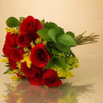 rosa vermelhas - 12 un. celofane e laço de cetim - 1 un. tango ou folhagens - 6 un.