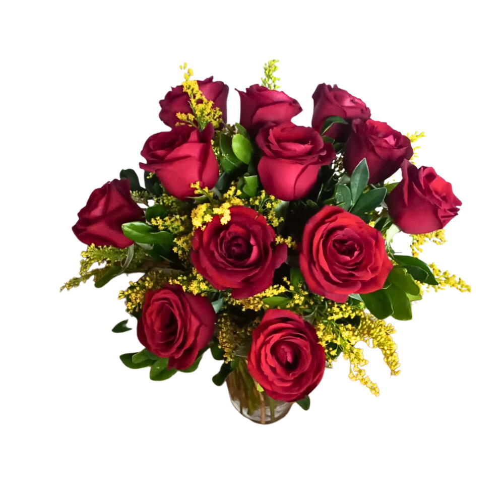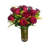 Este arranjo floral de enchimento inspirador inclui 6 unidades de tango, acrescentado com uma combinação de 6 unidades de folhagens, acomodadas em um belo vaso de vidro, dando uma visão agradável aos olhos. A peça central deste conjunto é a atraente dúzia de rosas vermelhas, que simbolizam o amor e o carinho. O arranjo é delicadamente embelezado com um laço de ráfia, promovendo uma estética elegante e rústica ao mesmo tempo. Este vaso floral é a escolha perfeita para decorar e trazer um toque de natureza para qualquer ambiente.