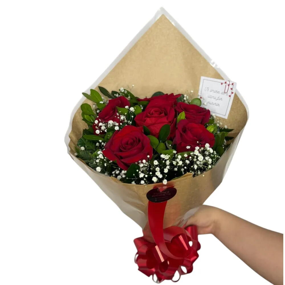 Encante com a sutileza e romantismo deste buquê. Composto por cinco rosas vermelhas, simbolizando o amor e a paixão, delicadamente combinadas com um toque de folhagem vibrante, que adiciona frescor e vida ao arranjo. O buquê é cuidadosamente embalado e finalizado com um belo laço, tornando-o o presente perfeito para ocasiões especiais, declarações de amor ou simplesmente para alegrar o dia de alguém especial. Um mimo especial para tornar qualquer momento inesquecível.