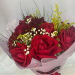 Este elegante buquê é composto por 6 rosas selecionadas, meticulosamente arranjadas para expressar a beleza e o frescor. Com o acréscimo de 3 hastes de folhagem, este arranjo possui um toque de verde que destaca ainda mais o vermelho vívido das rosas. Perfeito para demonstrar seu amor e carinho em qualquer ocasião. Conquistará corações e trará sorrisos.