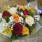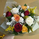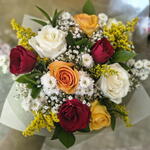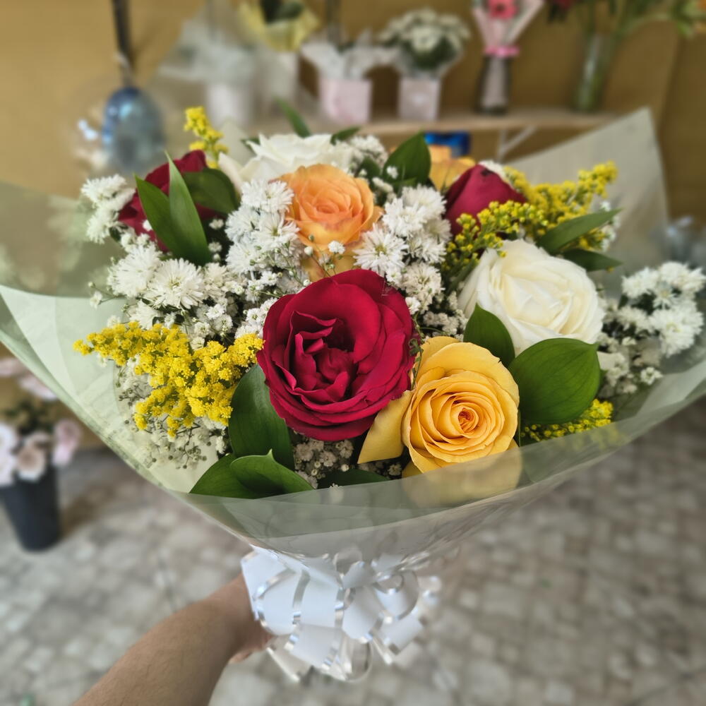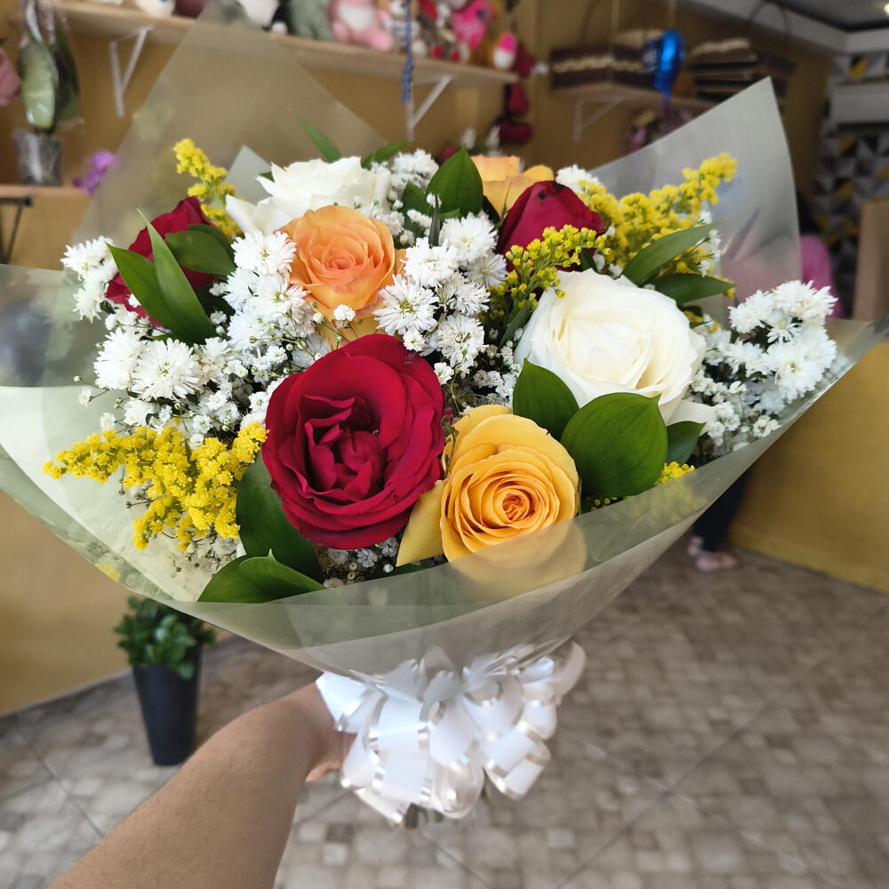 Este belíssimo buquê é composto por nove rosas variadas que representam a essência da feminilidade. Acompanhando as rosas, adicionamos dez unidades de aster e folhagem, criando um mix de cores e texturas que aprimoram a beleza natural das flores. Para garantir um acabamento perfeito, o buquê é cuidadosamente envolto em uma elegante embalagem de alta qualidade e finalizado com um delicado laço. Ideal para expressar o amor e o carinho que você sente por alguém especial.
