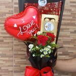 Seduzir o coração da pessoa amada se torna um gesto sublime com este maravilhoso buquê. Composto por duas resplandecentes rosas vermelhas, manifesto perfeito do amor arrebatador. Junto ao buquê, acompanha um balão com a declaração I love you, que eleva ainda mais o sentimento desta ocasião especial. Para completar a experiência, o produto também inclui uma caixa de Ferrero Rocher, proporcionando uma doçura irresistível ao presente. Ideal para surpreender e encantar em qualquer momento.