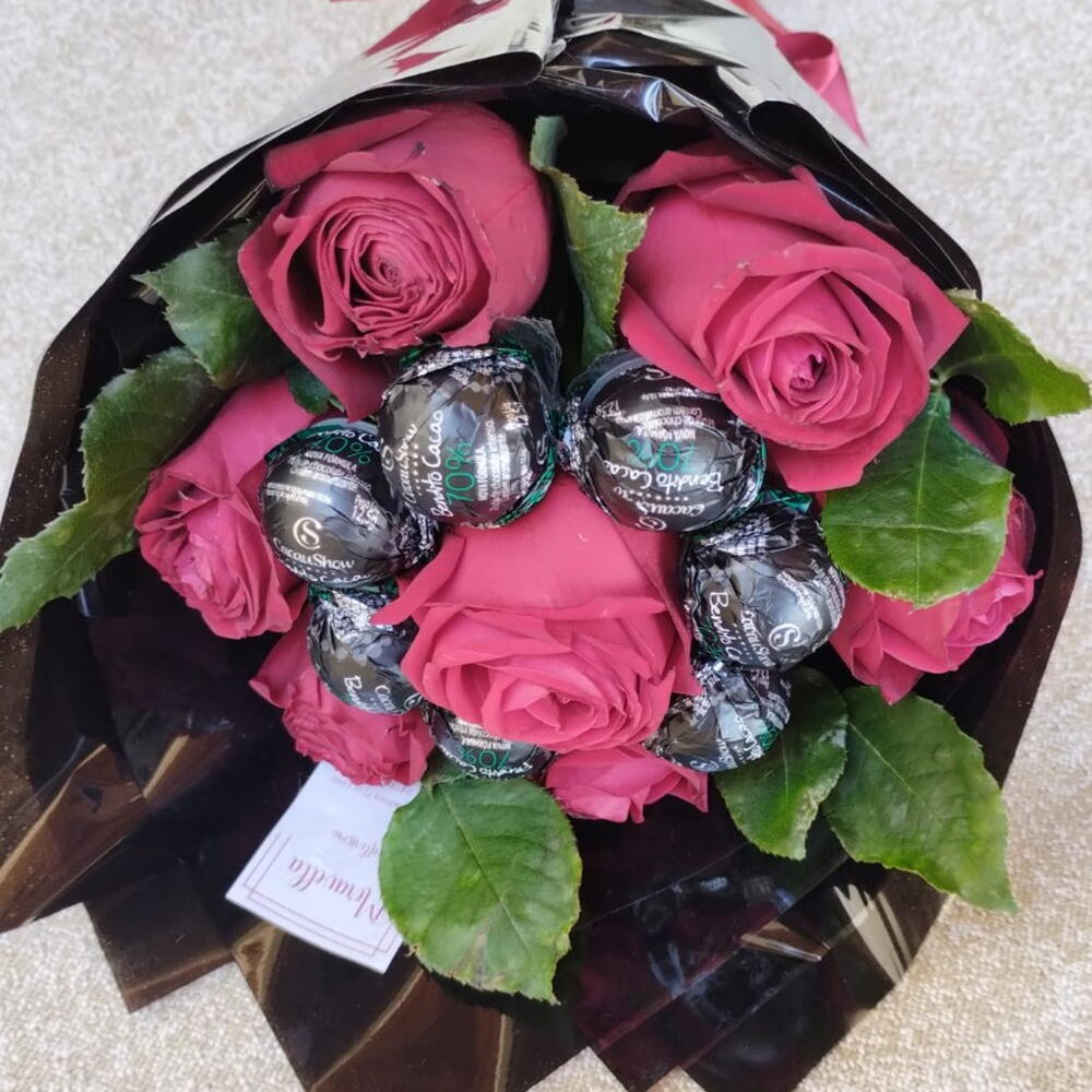 Este buquê é uma fusão perfeita de beleza e doçura. Composto por 7 rosas luxuosas que simbolizam uma conexão profunda e sincera, e adicionamos 7 trufas da Cacau Show para agradar ao paladar mais requintado. Tudo embalado de maneira elegante em uma única embalagem e finalizado com um laço sofisticado, tornando este buquê o presente perfeito para qualquer ocasião.
