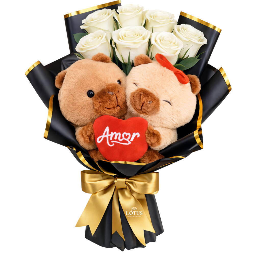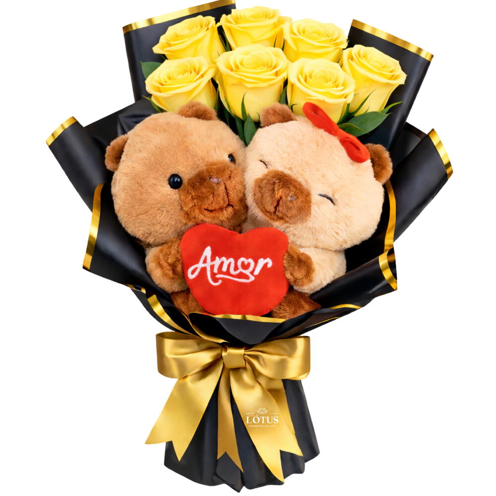Buquê Capivara com 7 Rosas (Escolha a cor)