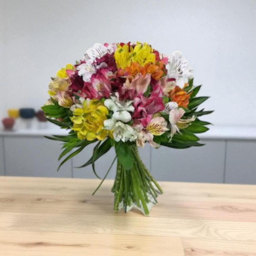 Este lindo buquê é composto por 30 unidades de delicadas astromélias cuidadosamente dispostas em uma elegante embalagem. Para finalizar com um toque especial, inclui um sofisticado laço. Perfeito para emocionar alguém especial em qualquer ocasião.