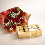 ferrero rocher - 8 un. rosa vermelhas - 10 un. chocolates premium - 1 un.