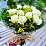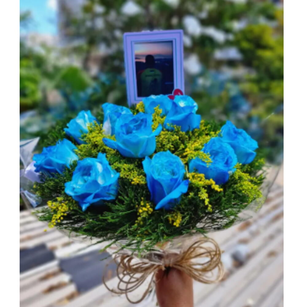 Lindo Buquê com 10 rosas Brancas, Amarelas, Azuis e folhagens naturais, acompanha cartinha com sua mensagem. (editamos sua mensagem em fonte manuscrita, imprimimos sua mensagem em folha ofício, com desenhos de acordo com o tema, enrolamos e fechamos com laço de fita de cetim). O buquê é personalizado com plaquinha com foto gratuitamente (brinde) - não é um porta-retrato. Por trabalhamos, exclusivamente, com flores naturais, elas poderão variar conforme a sazonalidade, desta forma, nenhum buquê será exatamente igual a outro (mesmo que a florista e o fornecedor seja o mesmo)
