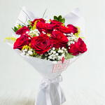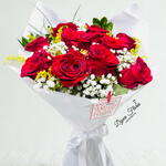 Este buquê encantador é composto por 10 rosas vermelhas únicas, apoiadas por uma unidade de folhagem verde, tornando-o a combinação perfeita de paixão e natureza. Para adicionar um toque delicado de elegância, uma unidade de gipsofilas elegantes é misturada entre as rosas. Tudo isso é embalado em uma sofisticada embalagem com fita de cetim, que realça a beleza das flores. E para tornar o presente ainda mais especial, ele é acompanhado por um cartão de mensagem personalizado e uma tag. Este buquê transmite não apenas amor e carinho, mas também grande refinamento e bom gosto.