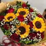 Buquê com 12 Rosas e 4 Girassois