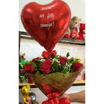 Buquê com 12 Rosas Vermelhas com Balão Personalizado