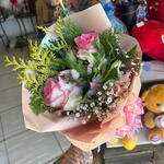 Este buquê charmoso é composto por duas rosas cor-de-rosa, complementadas por folhagens exuberantes. Cuidadosamente embalado em uma unidade de embalagem sofisticada e finalizado com um laço elegante, este buquê é o presente perfeito para expressar seu amor e apreço.