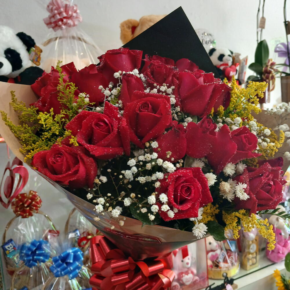 O Buquê de 24 Rosas é uma expressão vívida e elegante de sentimentos profundos. Com sua rica variedade de cores e pétalas delicadas, este buquê cria um arranjo deslumbrante que é um verdadeiro deleite para os olhos. Cada rosa, por si só, é um símbolo atemporal de amor, paixão e apreço, tornando este buquê uma escolha magnífica para transmitir sentimentos intensos e expressar a beleza da emoção. É o presente perfeito para ocasiões românticas, aniversários ou para surpreender alguém especial com a beleza atemporal das rosas.
