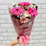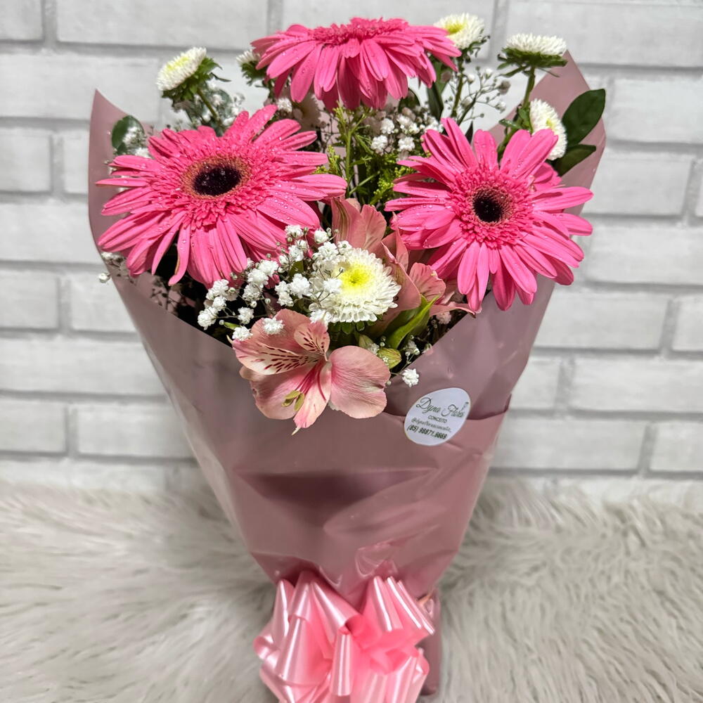 Este bouquet ilumina qualquer espaço com a sua mistura vibrante de gérberas e gypsophila, acompanhadas por uma unidade de folhagem fresca. Um cartão de mensagem incluído permite exprimir os seus sentimentos com palavras, enquanto o detalhe de uma tag Feito com amor adiciona um toque pessoal e sentimental. Este arranjo floral é a maneira perfeita de transmitir qualquer mensagem, seja de amor, agradecimento ou simpatia.